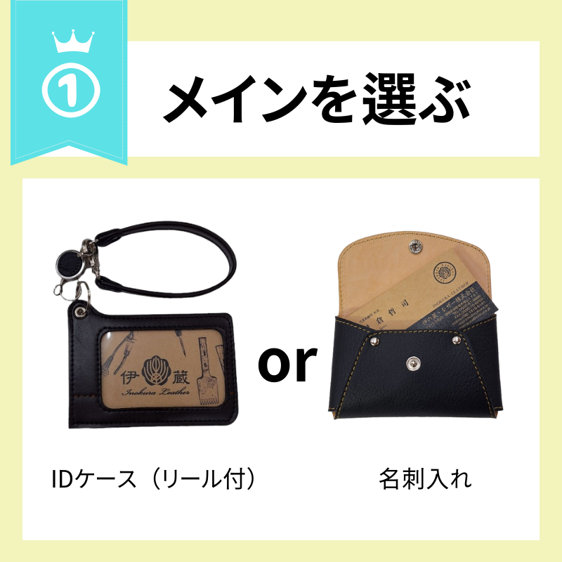 IDケース(リール付)またはキ名刺入れからおひとつお選びください。
